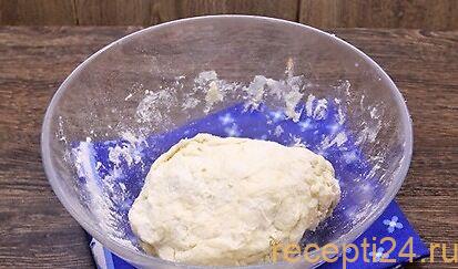 Туда же добавляют холодную воду и замешивают крутое тесто. Его нужно убрать в холодильник минимум на 30 минут.