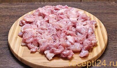 Чтоб приготовить сочную самсу из курицы стоит брать жирные части птицы. Отлично подойдут ножки и бедра. Шкурку можно выбросить или же мелко нарезать. Из филе получится более постные, диетические конвертики. Филе бедра отличная альтернатива: нем меньше жира, но мясо довольно сочное и мягкое. Плюс, не нужно срезать с кости.