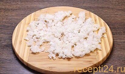 Лук нужно почистить и мелко нарезать. Можно его измельчить в блендере, чтоб получить нежную текстуру.