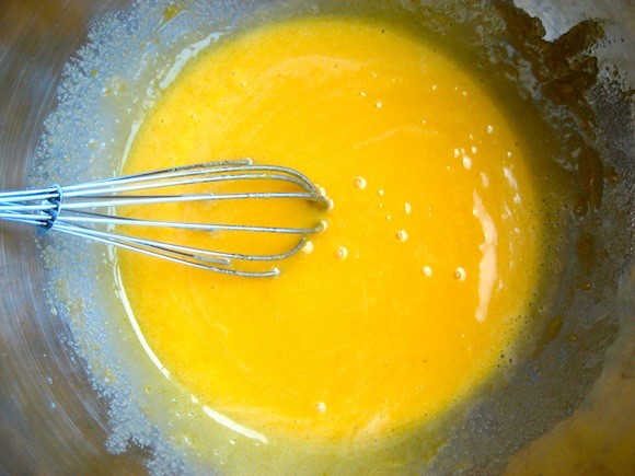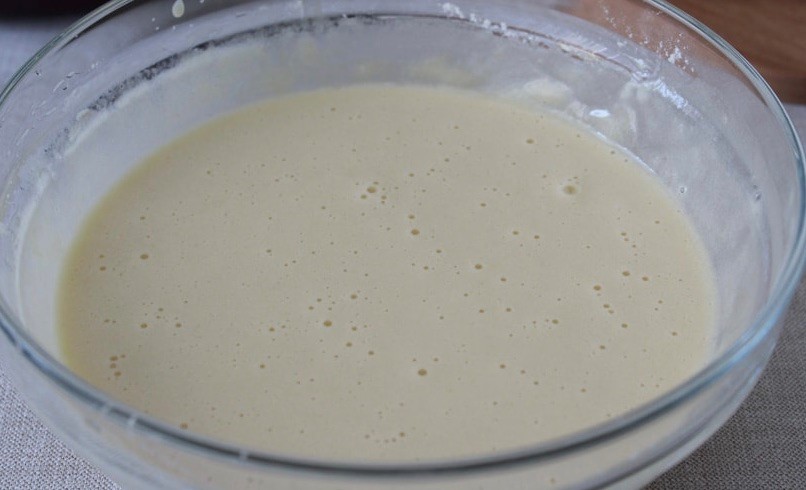 К взвитым с сахаром яйцам добавляем просеянную муку, соду (или разрыхли-тель) и по желанию корицу. Тщательно перемешиваем — тесто не должно со-держать комочков, а по консистенции должно напоминать густую сметану.