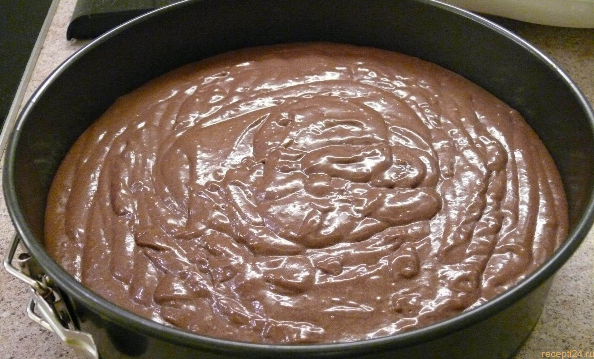 Форму с тестом перекладывается в разогретую до 170 градусов духовку. Выпекается торт примерно 1 час (+/- 10 мин). Перед тем как извлечь торт из духовки, его протыкают деревянной палочкой. Если она полностью сухая – корж хорошо пропекся, его можно вытаскивать из духового шкафа.