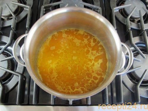 На водяной бане подогревается подсолнечное масло. Если его поменяли на сливочное, то нужно масло растопить. Нельзя чтобы оно закипело.