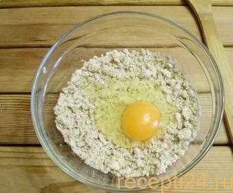В полученную смесь добавить яйцо, быстро и тщательно перемешать вилкой.