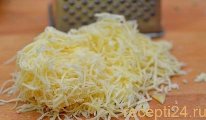 Вооружившись крупной тёркой, измельчите сыр Фета и Сулунги, затем тщательно перемешайте ингредиенты.