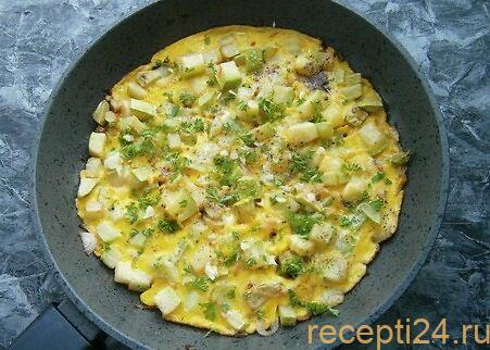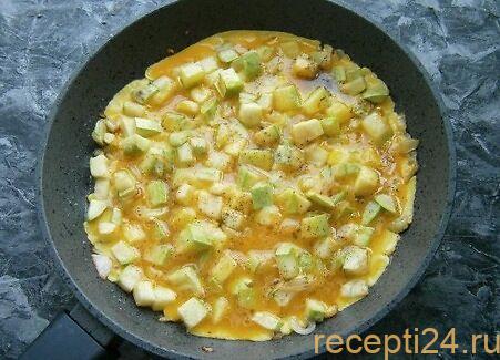 Вкус блюда зависит от приготовления кабачков. Их нужно порезать небольшими кубиками, чтоб плод хорошо прожарился. Важно сохранить нежную текстуру овоща, тогда яичница получится невероятно вкусной.