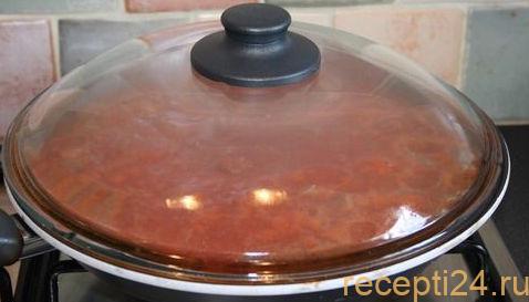Накрыть крышкой сковороду и тушить до готовности. Как будет готово выключить огонь и дать постоять продукту под крышкой минуту.