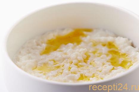 Готовую кашу выкладываем в тарелки с высокими бортиками и украшаем кусочками сливочного масла из расчета 5 г на 1 порцию. Кашу с маслом можно не перемешивать. Растаявшие лужицы красивого желтого цвета будут отличным декором для аппетитной презентации.