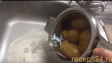А затем залейте картофель на 3 – 4 минуты холодной водой.