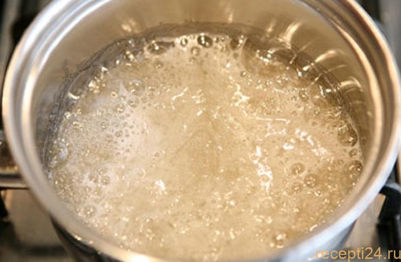 Сцедить жидкость. Положить крупу в кастрюлю и налить 200 мл воды, посолить.
