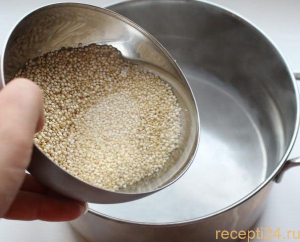 Предварительно крупу нужно замочить в воде на 2-3 часа. Чтобы утром сварить рассыпчатую кашу, рационально залить киноа водой с вечера.