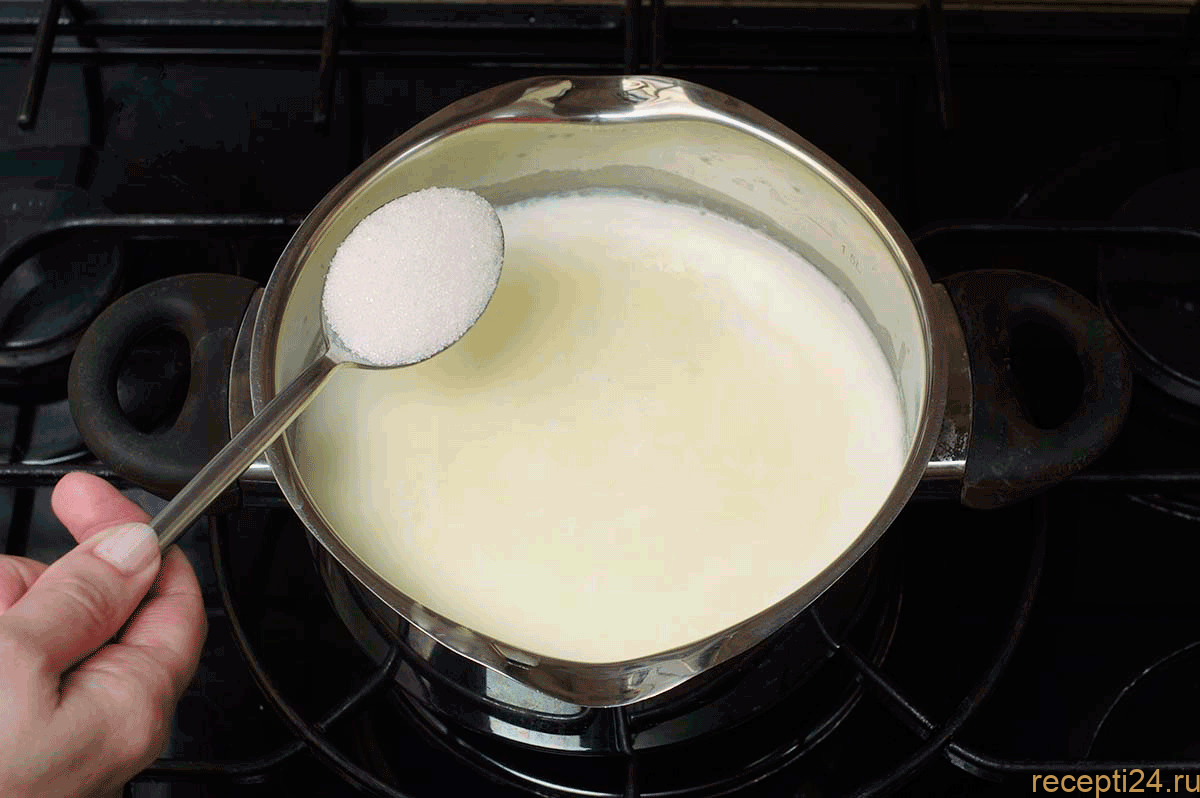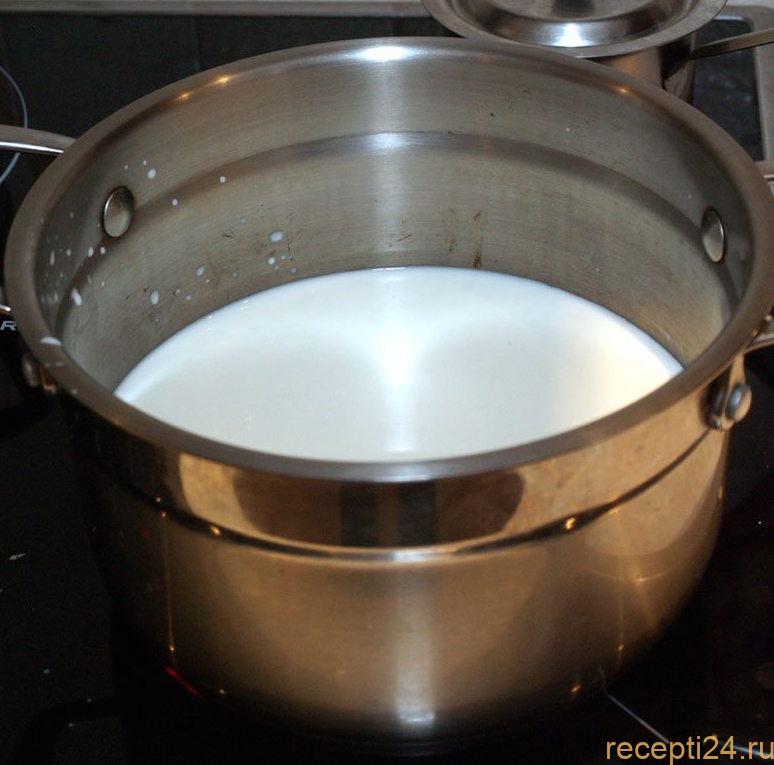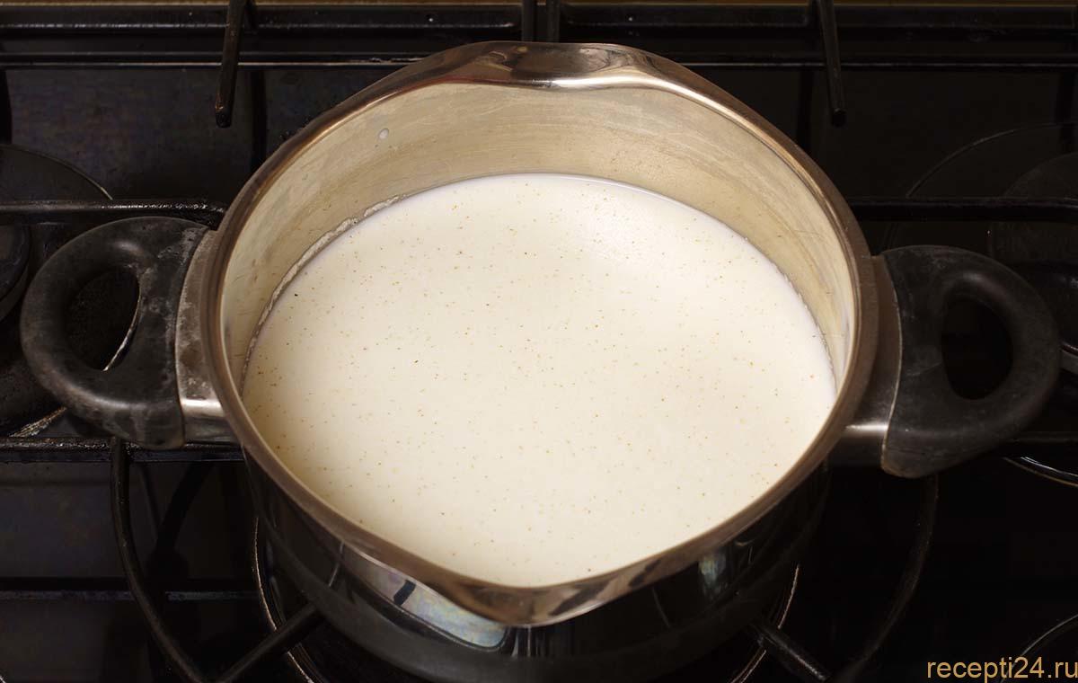 Оставшееся молоко медленно вскипятите и убавьте интенсивность огня.
