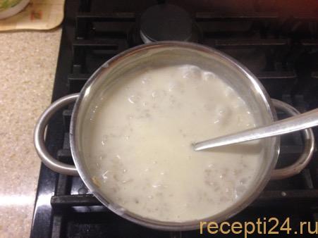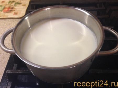 В кастрюле подходящих размеров нужно подогреть пол литра молока. Кипятить его сразу не обязательно, нужно дождаться, пока оно только начнет закипать.