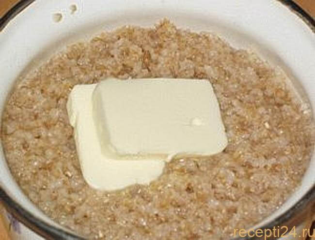 Спустя 20 минут снимает кастрюлю с огня, добавляем растительное масло. Закройте крышку и дайте каше настояться.