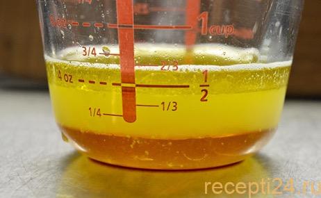 В это время готовим заправку. В чаше смешиваем 50 мл соевого уксуса, 0,5 чайной ложки соли и 0,5 столовой ложки сахара. Перемешиваем, пока сахар и соль не растворятся.