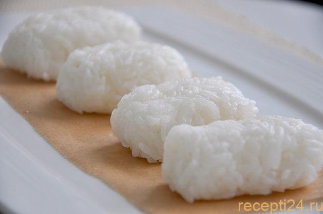 Прежде чем приступить к формированию роллов, необходимо дать рису остынуть, но не доводить до холодного состояния. После можно приступать к лепке, также продолжая использовать деревянную посуду.