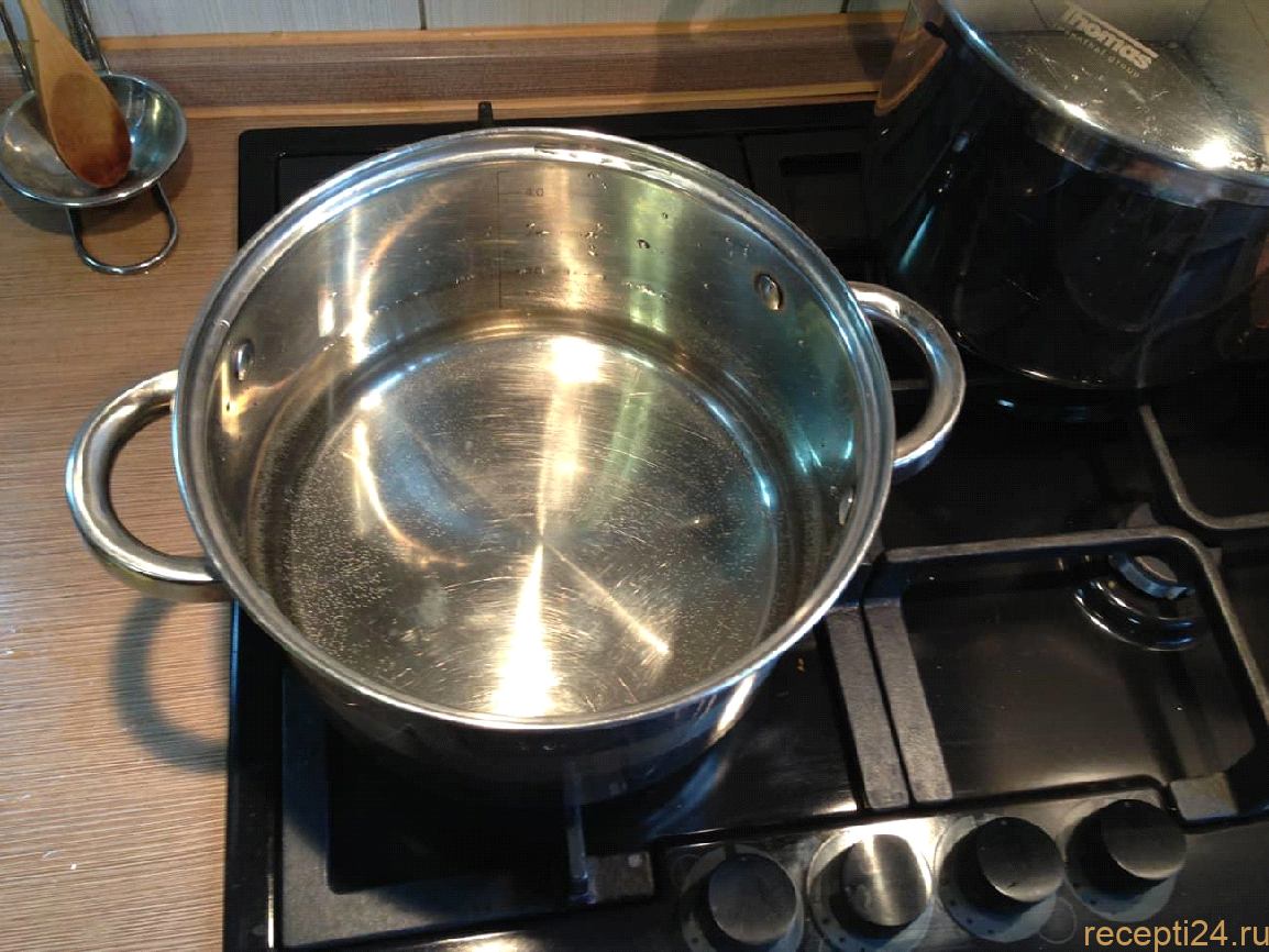 Крупную кастрюлю наполнить 4 литрами чистой воды. Поставить на средний огонь.