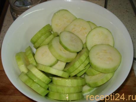 Нарезать кружочками средней толщины – примерно 1 см. Про такую нарезку обычно говорят «толщиной в палец».