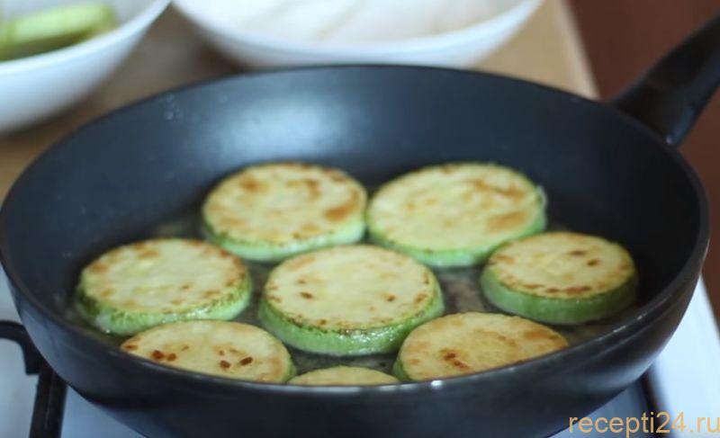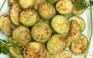 Жарить кабачки на небольшом огне с двух сторон до образования румяной корочки.