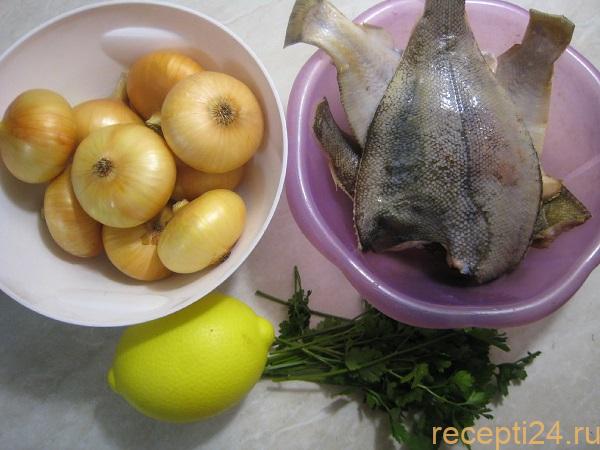 Для запекания камбалы по данному рецепту можно использовать не только рыбу целиком, но и замороженные тушки. При этом нужно помнить, что при размораживании они потеряют в своей массе до 50% веса. Более интересный вкус получится при замене репчатого лука на шалот или лук-порей.