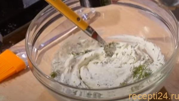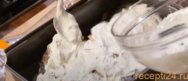 Мелко нарезать 30 г укропа. Смешать его с 500 мл сметаны, 1 ч.л. соли и 1 ч.л. черного молотого перца. Соус для запекания готов.