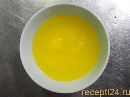 30 г сливочного масла нужно растопить в микроволновке и намазать этой жидкостью уже нафаршированную рыбину.