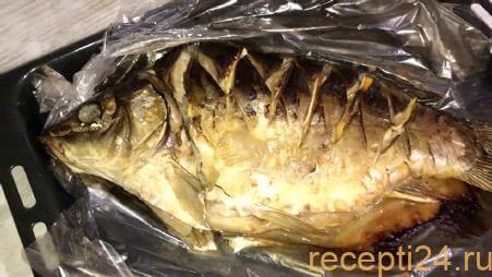 Укладываем карпа в рукав для запекания и плотно завязываем концы. Можно сделать несколько проколов в пленке, чтобы воздух циркулировал.