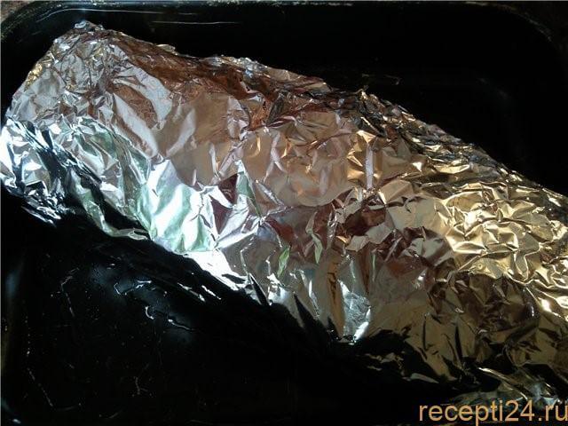 По прошествии указанного времени необходимо достать рыбу, развернуть фольгу и оставить противень в таком виде в духовке еще на 7-10 минут, чтобы его содержимое подрумянилось сверху.