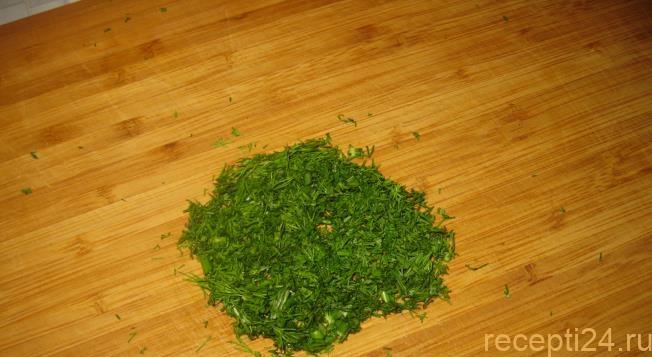Для приготовления маринада измельчить 30 г укропа.