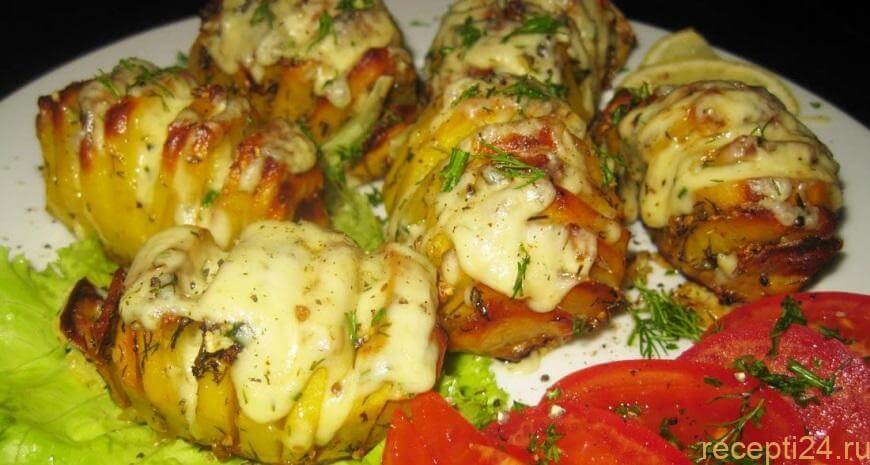 Для приготовления блюда стоит использовать клубни среднего размера с как можно более ровной поверхностью без ростков. Неровная картошка не позволит сделать красивые неломающиеся надрезы.