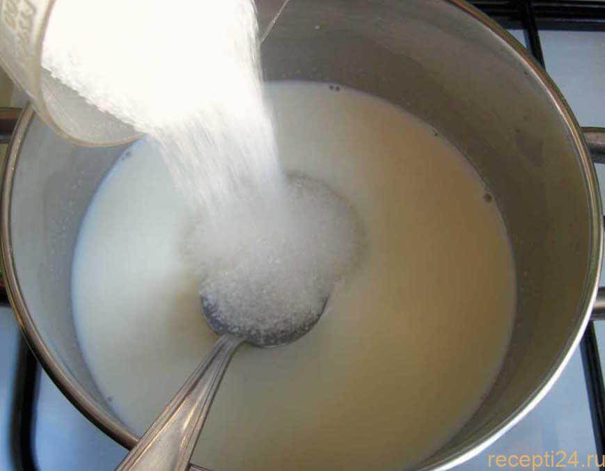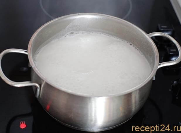 Подготовьте кастрюлю с толстым дном и влейте молоко. Доведите до кипения.