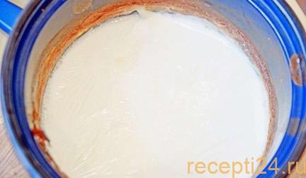 Самым первым этапом является подготовка топленого молока. Именно оно задает весь вкусовой тон. Молоко выливают в кастрюлю с толстыми стенками и дном, добавляют на кончике ножа ванилин. Если это ванильное масло – то 2-3 капли будет достаточно. Не желательно топить молоко в эмалированной емкости, так как есть риск пригорания. Кастрюлю помещают на плиту на маленький огонь. По времени это займет полтора часа. Во время этого процесса будет образовываться на поверхности пенка. Ее нужно снимать. Получится примерно шесть пенок. Их не выбрасывают, а откладывают в отдельную посуду.