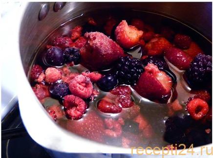 Вторая половина меда выкладывается в другую емкость. Туда ложатся свежие фрукты. Яблоки и груши нарезаются небольшими кубиками. Фрукты на водяной бане должны томиться с медом около 5 мин. По желанию к фруктам можно добавить цедру апельсина или лимона, корицу, гвоздику, коньяк. Это придаст больше разнообразия вкусу.
