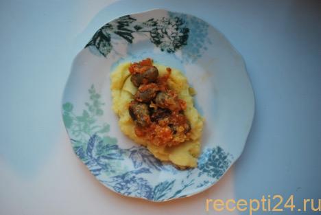 Подавайте с картофельным пюре или отварным картофелем со сливочным маслом. Выложите порцию гарнира и распределите куриные сердечки в сметанном соусе. Приятного аппетита!
