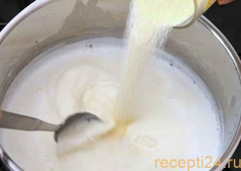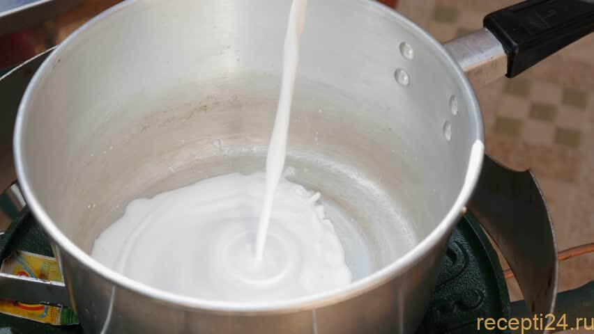 Кокосовое молоко наливаем в кастрюлю, ставим на огонь и доводим до кипения.