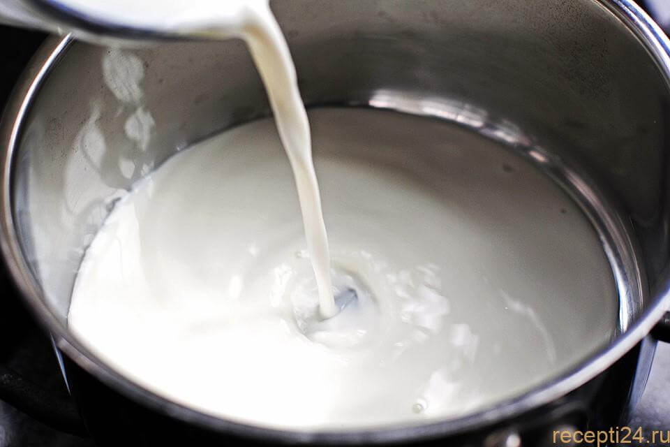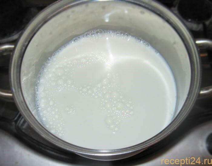 Необходимо подождать, пока закипит молоко. Только тогда стоит начинать помешивать.