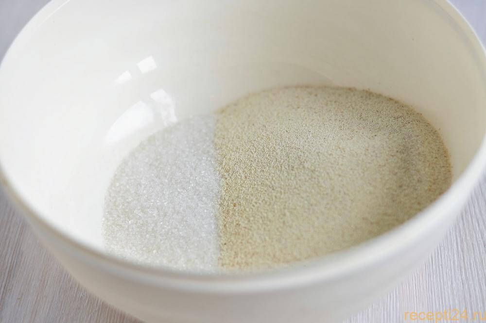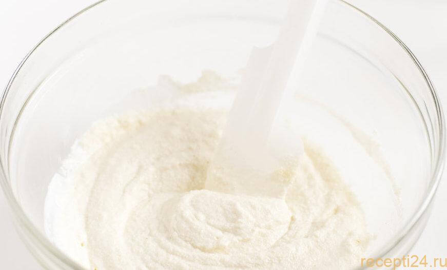 Сухие ингредиенты залейте молоком и перемешайте для того, чтобы соль и сахар успели раствориться.