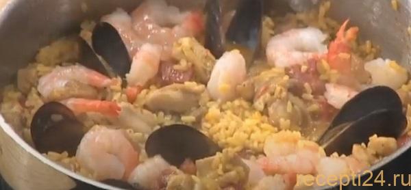 Отличительная особенность блюда — все зерна риса должны оставаться отдельными и сохранять свою форму. Паэлья не должна быть густой, это сочное блюдо. При необходимости, можно добавить бульона немного больше, чем указано в рецепте.
