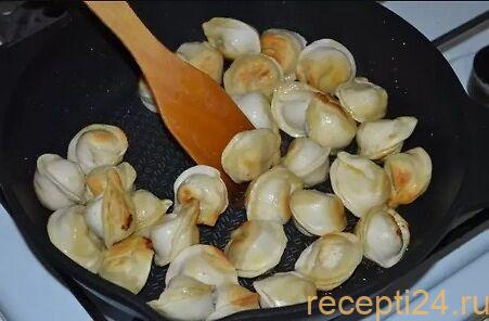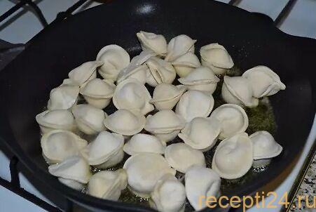Заранее отваривать продукт не нужно. Он дойдет до готовности во время тушения на сковороде. Это самый быстрый и вкусный вариант приготовления пельменей.