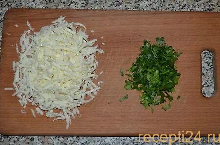 Мелко нарезают петрушку. На крупной терке необходимо натереть сыр.