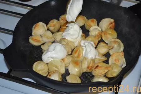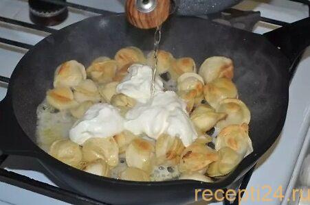 Пельмени на сковороде со сметаной — оригинальный рецепт, который придется по вкусу взрослым и детям. Блюдо очень питательное и позволяет надолго избавиться от чувства голода. Сметанный соус с сыром отлично подчеркивает вкус мяса. Если хочется удивить родных новым блюдом из привычных продуктов — жареные пельмени со сметаной — идеальное решение.