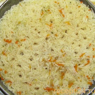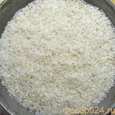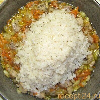 В сковороду добавляют рис.