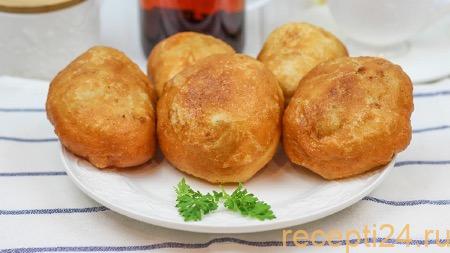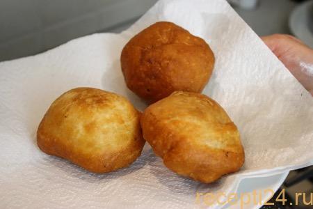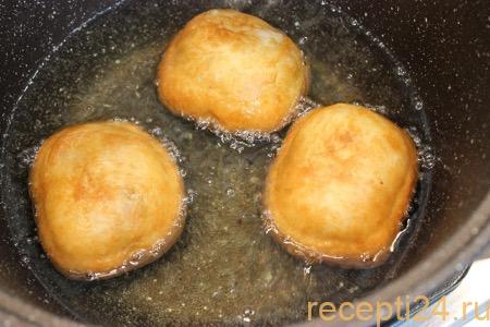 В глубокой сковороде разогреть растительное масло. Оно должно покрывать пирожки хотя бы наполовину. Шарики вкладывать во фритюр швом вниз и готовить по 4 минуты с каждой стороны на среднем огне.