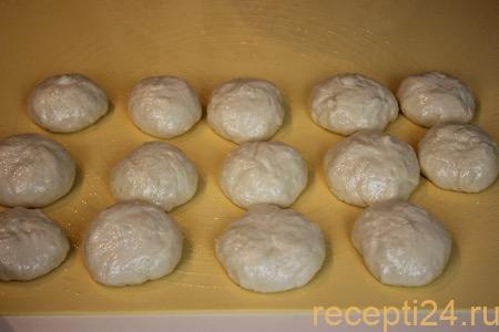 Рабочую поверхность смазать растительным маслом и выложить на нее шарики из теста. Полученного объема должно хватить примерно 14 шт.