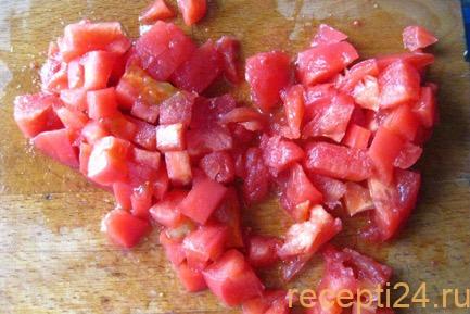 Чистятся томаты от кожуры, нарезаются кубиками. Как только остальные ингредиенты приготовились, добавляются помидоры. Если их дать раньше, картофель может стать твердым. Гуляш тушится еще минут 15, в него добавляются специи (5 мин. до окончания готовки).