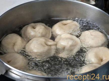 В кипящую воду закидываются пельмени и варятся так после закипания около 3 мин. Их нужно время от времени помешивать, чтобы изделия не прилипли ко дну. Время отсчитывать необходимо с момента закипания жидкости с пельменями.