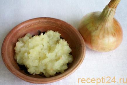 Лук очищается от шелухи и натирается на самой мелкой терке. Должна получиться кашица.