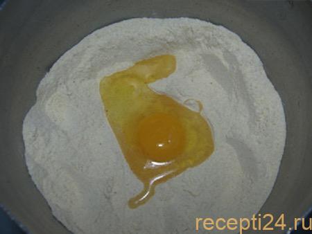 В полученную массу по центру добавить 1 яйцо и взболтать его.