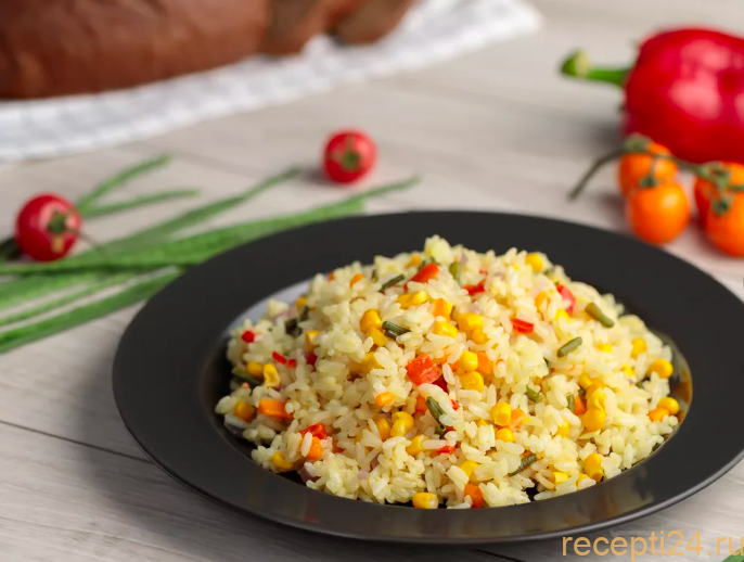 Смесь из риса и овощей идеально сочетается с мясом и рыбой. Станет отличным источником энергии и витаминов для тех, кто на диете или соблюдает пост.