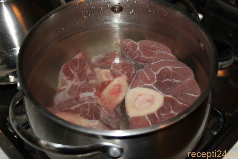 Исходя из предыдущих действий, вы получите вымоченное мясо, полностью готовое к варке. После этого кастрюлю необходимо наполнить охлажденной водой, поместить в неё говяжье сердце и поставить на включенную плиту.