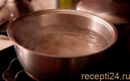 В кастрюлю пошире наливаем 1 литр воды и ставим на плиту, чтобы жидкость закипала.